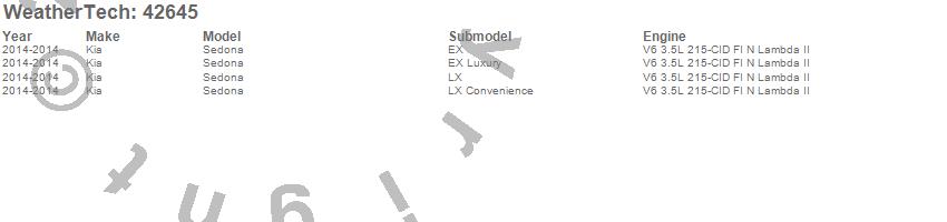 Below is an abbreviated list of applications for the Cargo Liner.Sedona, Kia, 2014