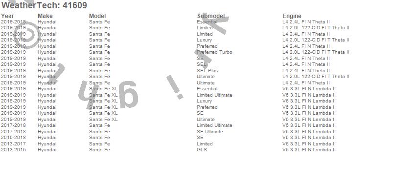 Below is an abbreviated list of applications for the Cargo Liner.Santa Fe, Santa Fe XL, Hyundai, 2019, 2018, 2017, 2016, 2015, 2014, 2013