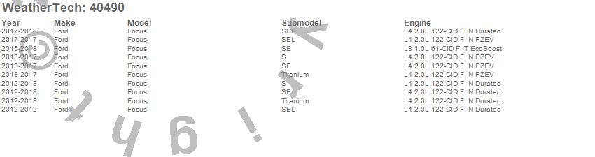 Below is an abbreviated list of applications for the Cargo Liner.Focus, Ford, 2018, 2017, 2016, 2015, 2014, 2013, 2012