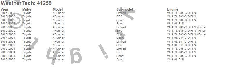 Below is an abbreviated list of applications for the Cargo Liner.4Runner, Toyota, 2009, 2008, 2007, 2006, 2005, 2004, 2003