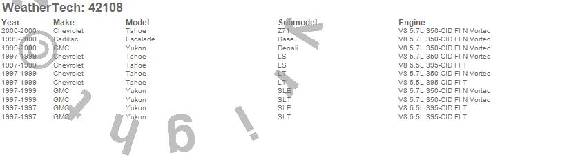 Below is an abbreviated list of applications for the Cargo Liner.Escalade, Tahoe, Yukon, Cadillac, Chevrolet, GMC, 2000, 1999, 1998, 1997