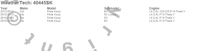 Below is an abbreviated list of applications for the Cargo Liner w/Bumper Protector.Forte Koup, Kia, 2013, 2012, 2011, 2010