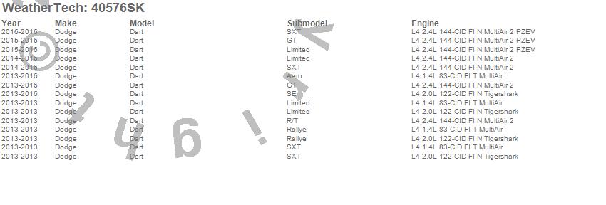 Below is an abbreviated list of applications for the Cargo Liner w/Bumper Protector.Dart, Dodge, 2016, 2015, 2014, 2013