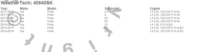 Below is an abbreviated list of applications for the Cargo Liner w/Bumper Protector.Forte, Kia, 2018, 2017, 2016, 2015, 2014