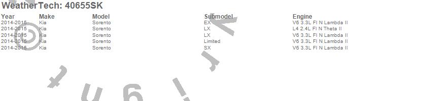 Below is an abbreviated list of applications for the Cargo Liner w/Bumper Protector.Sorento, Kia, 2015, 2014