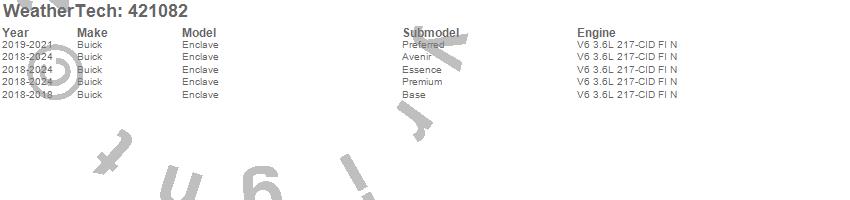 Below is an abbreviated list of applications for the Cargo Liner.Enclave, Buick, 2024, 2023, 2022, 2021, 2020, 2019, 2018