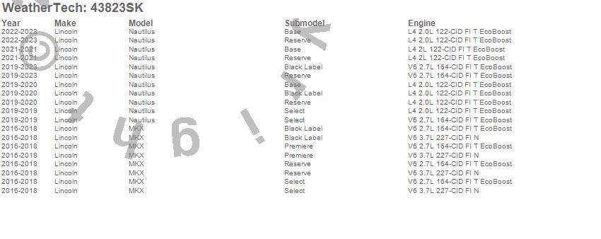 Below is an abbreviated list of applications for the Cargo Liner w/Bumper Protector.MKX, Nautilus, Lincoln, 2023, 2022, 2021, 2020, 2019, 2018, 2017, 2016