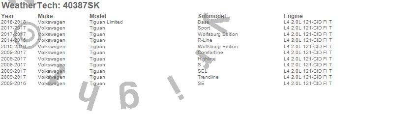Below is an abbreviated list of applications for the Cargo Liner w/Bumper Protector.Tiguan, Tiguan Limited, Volkswagen, 2018, 2017, 2016, 2015, 2014, 2013, 2012, 2011, 2010, 2009