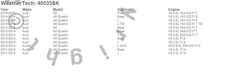 Below is an abbreviated list of applications for the Cargo Liner w/Bumper Protector.A8 Quattro, S8, Audi, 2016, 2015, 2014, 2013, 2012, 2011