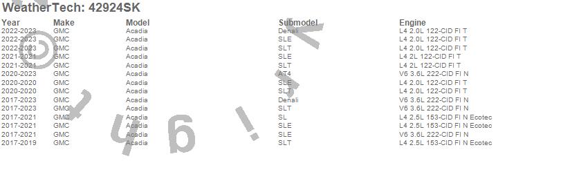 Below is an abbreviated list of applications for the Cargo Liner w/Bumper Protector.Acadia, GMC, 2023, 2022, 2021, 2020, 2019, 2018, 2017