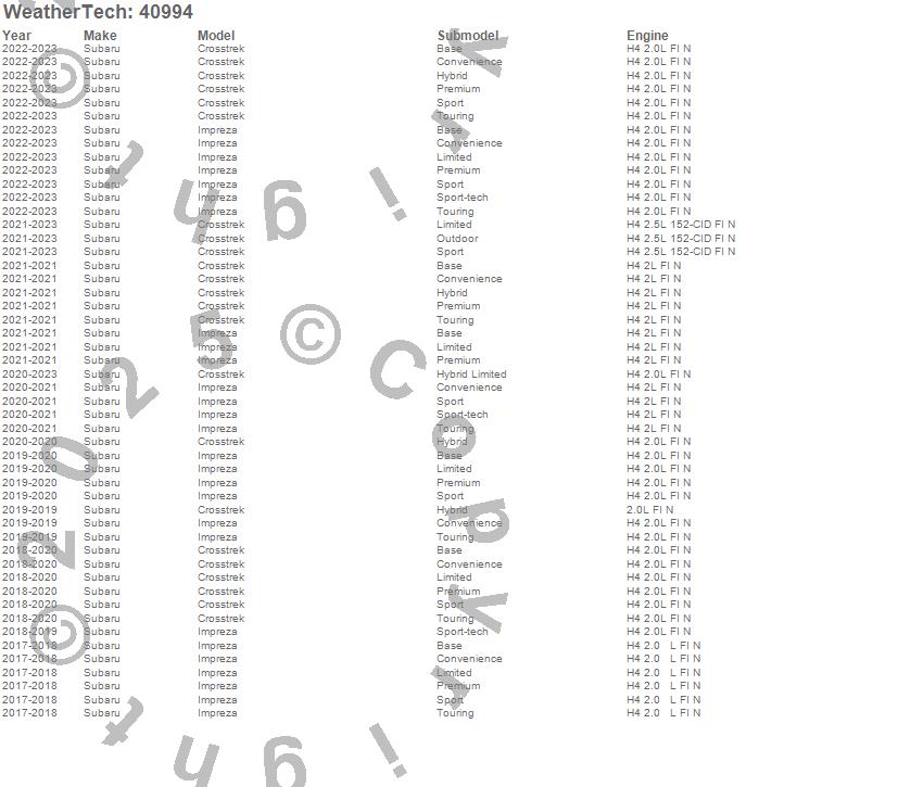 Below is an abbreviated list of applications for the Cargo Liner.Crosstrek, Impreza, Subaru, 2023, 2022, 2021, 2020, 2019, 2018, 2017