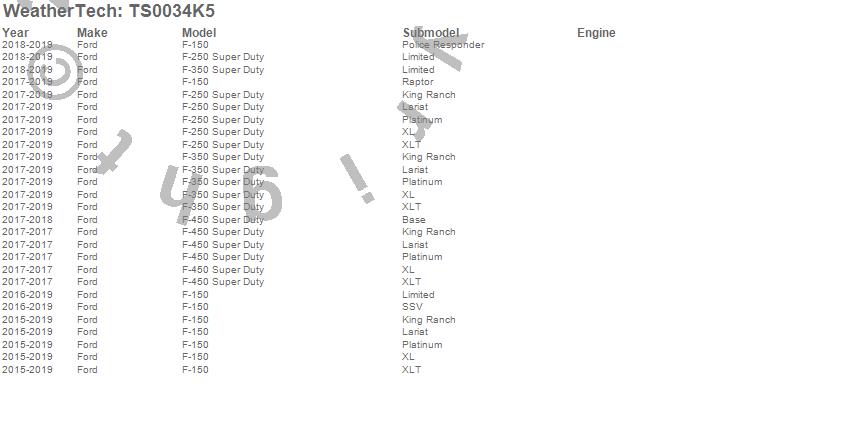 Below is an abbreviated list of applications for the WeatherTech SunShade Full Vehicle Kit.F-150, F-250 Super Duty, F-350 Super Duty, F-450 Super Duty, Ford, 2019, 2018, 2017, 2016, 2015