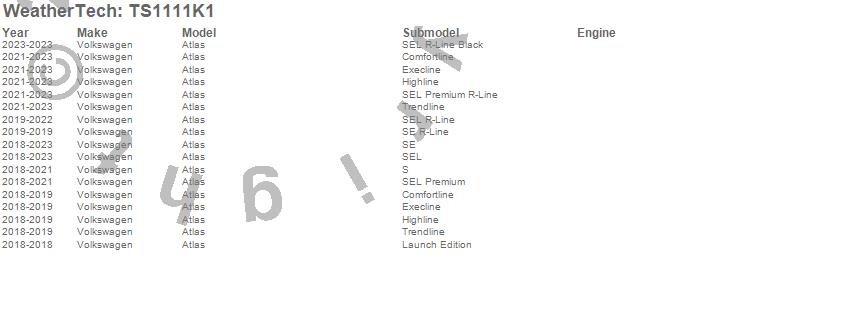 Below is an abbreviated list of applications for the WeatherTech SunShade Full Vehicle Kit.Atlas, Volkswagen, 2026, 2025, 2024, 2023, 2022, 2021, 2020, 2019, 2018