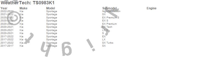 Below is an abbreviated list of applications for the WeatherTech SunShade Full Vehicle Kit.Sportage, Kia, 2022, 2021, 2020, 2019, 2018, 2017