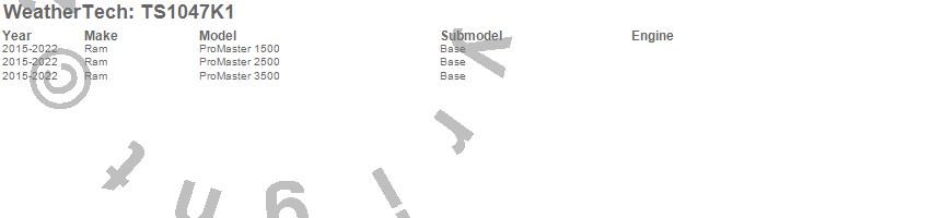 Below is an abbreviated list of applications for the WeatherTech SunShade Full Vehicle Kit.ProMaster 1500, ProMaster 2500, ProMaster 3500, Ram, 2022, 2021, 2020, 2019, 2018, 2017, 2016, 2015