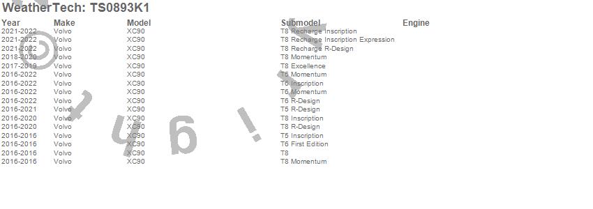 Below is an abbreviated list of applications for the WeatherTech SunShade Full Vehicle Kit.XC90, Volvo, 2022, 2021, 2020, 2019, 2018, 2017, 2016