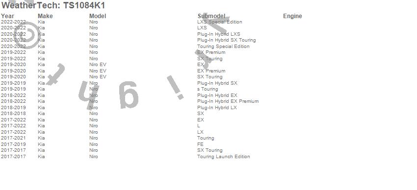 Below is an abbreviated list of applications for the WeatherTech SunShade Full Vehicle Kit.Niro, Niro EV, Kia, 2022, 2021, 2020, 2019, 2018, 2017