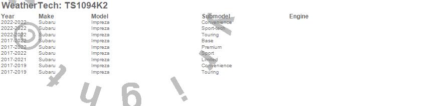 Below is an abbreviated list of applications for the WeatherTech SunShade Full Vehicle Kit.Impreza, Subaru, 2022, 2021, 2020, 2019, 2018, 2017