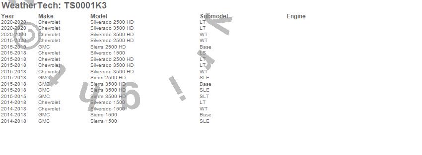 Below is an abbreviated list of applications for the WeatherTech SunShade Full Vehicle Kit.Sierra 1500, Sierra 2500 HD, Sierra 3500 HD, Silverado 1500, Silverado 2500 HD, Silverado 3500 HD, Chevrolet, GMC, 2020, 2019, 2018, 2017, 2016, 2015, 2014