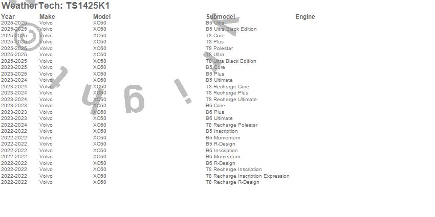 Below is an abbreviated list of applications for the WeatherTech SunShade Full Vehicle Kit.XC60, Volvo, 2026, 2025, 2024, 2023, 2022