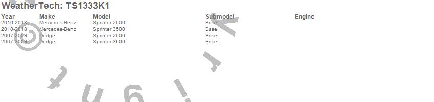 Below is an abbreviated list of applications for the WeatherTech SunShade Full Vehicle Kit.Sprinter 2500, Sprinter 3500, Dodge, Mercedes-Benz, 2018, 2017, 2016, 2015, 2014, 2013, 2012, 2011, 2010, 2009, 2008, 2007