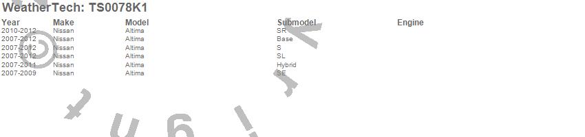 Below is an abbreviated list of applications for the WeatherTech SunShade Full Vehicle Kit.Altima, Nissan, 2012, 2011, 2010, 2009, 2008, 2007