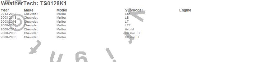 Below is an abbreviated list of applications for the WeatherTech SunShade Full Vehicle Kit.Malibu, Chevrolet, 2013, 2012, 2011, 2010, 2009, 2008