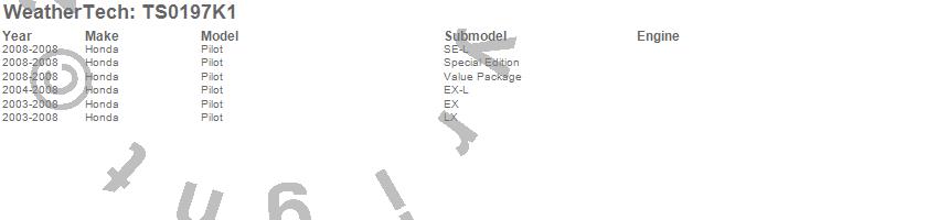 Below is an abbreviated list of applications for the WeatherTech SunShade Full Vehicle Kit.Pilot, Honda, 2008, 2007, 2006, 2005, 2004, 2003