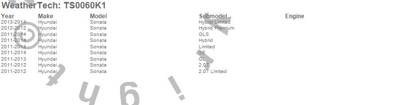 Below is an abbreviated list of applications for the WeatherTech SunShade Full Vehicle Kit.Sonata, Hyundai, 2014, 2013, 2012, 2011
