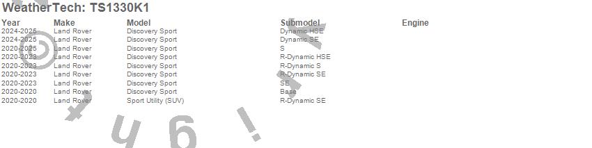 Below is an abbreviated list of applications for the WeatherTech SunShade Full Vehicle Kit.Discovery Sport, Land Rover, 2025, 2024, 2023, 2022, 2021, 2020
