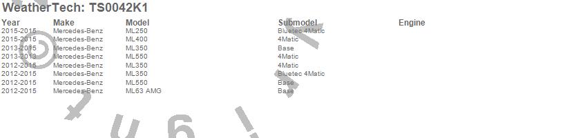 Below is an abbreviated list of applications for the WeatherTech SunShade Full Vehicle Kit.ML250, ML350, ML400, ML550, ML63 AMG, Mercedes-Benz, 2015, 2014, 2013, 2012
