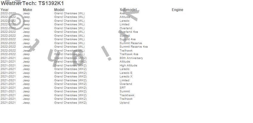 Below is an abbreviated list of applications for the WeatherTech SunShade Full Vehicle Kit.Grand Cherokee (WK2), Grand Cherokee (WL), Jeep, 2022, 2021