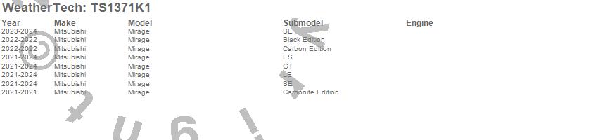 Below is an abbreviated list of applications for the WeatherTech SunShade Full Vehicle Kit.Mirage, Mitsubishi, 2024, 2023, 2022, 2021