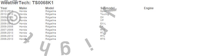Below is an abbreviated list of applications for the WeatherTech SunShade Full Vehicle Kit.Ridgeline, Honda, 2013, 2012, 2011, 2010, 2009, 2008, 2007, 2006