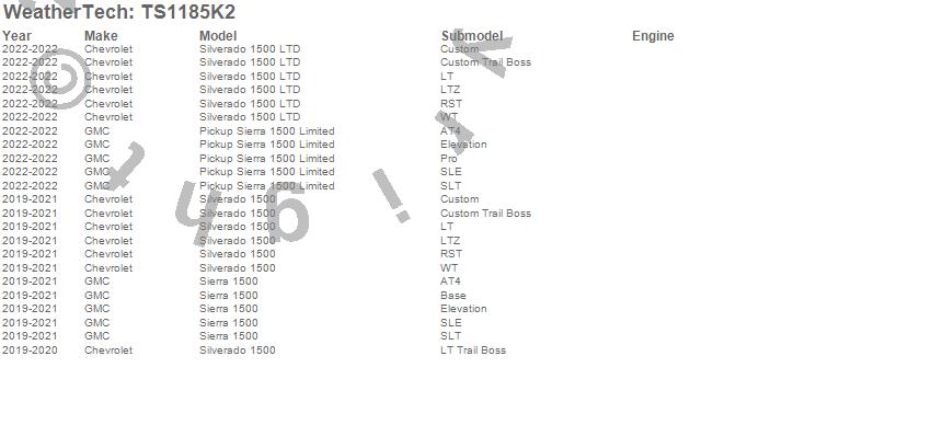 Below is an abbreviated list of applications for the WeatherTech SunShade Full Vehicle Kit.Pickup Sierra 1500 Limited, Sierra 1500, Silverado 1500, Silverado 1500 LTD, Chevrolet, GMC, 2022, 2021, 2020, 2019
