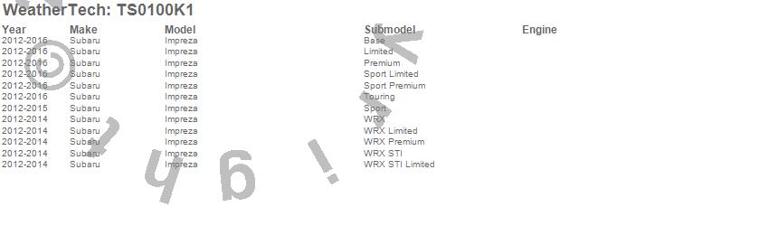 Below is an abbreviated list of applications for the WeatherTech SunShade Full Vehicle Kit.Impreza, Subaru, 2016, 2015, 2014, 2013, 2012