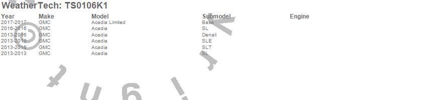 Below is an abbreviated list of applications for the WeatherTech SunShade Full Vehicle Kit.Acadia, Acadia Limited, GMC, 2017, 2016, 2015, 2014, 2013