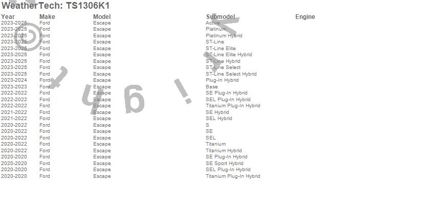 Below is an abbreviated list of applications for the WeatherTech SunShade Full Vehicle Kit.Escape, Ford, 2026, 2025, 2024, 2023, 2022, 2021, 2020
