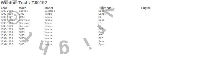 Below is an abbreviated list of applications for the WeatherTech SunShade.Escalade, Tahoe, Yukon, Cadillac, Chevrolet, GMC, 2000, 1999, 1998, 1997, 1996, 1995, 1994, 1993, 1992
