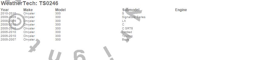 Below is an abbreviated list of applications for the WeatherTech SunShade.300, Chrysler, 2010, 2009, 2008, 2007, 2006, 2005