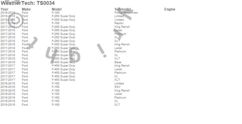 Below is an abbreviated list of applications for the WeatherTech SunShade.F-150, F-250 Super Duty, F-350 Super Duty, F-450 Super Duty, Ford, 2018, 2017, 2016, 2015