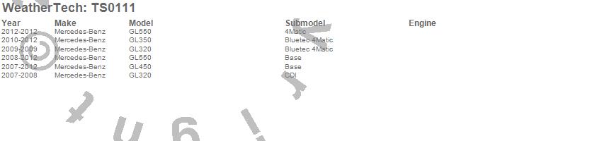 Below is an abbreviated list of applications for the WeatherTech SunShade.GL320, GL350, GL450, GL550, Mercedes-Benz, 2012, 2011, 2010, 2009, 2008, 2007
