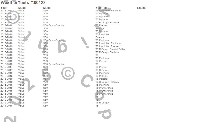 Below is an abbreviated list of applications for the WeatherTech SunShade.S60, V60, V60 Cross Country, Volvo, 2018, 2017, 2016, 2015, 2014, 2013, 2012, 2011