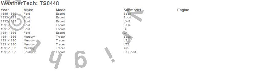Below is an abbreviated list of applications for the WeatherTech SunShade.Escort, Tracer, Ford, Mercury, 1996, 1995, 1994, 1993, 1992, 1991
