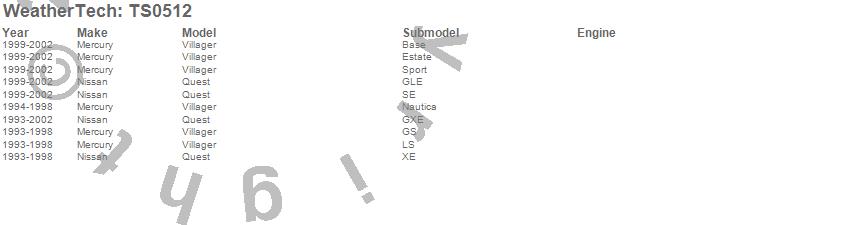 Below is an abbreviated list of applications for the WeatherTech SunShade.Quest, Villager, Mercury, Nissan, 2002, 2001, 2000, 1999, 1998, 1997, 1996, 1995, 1994, 1993