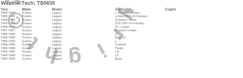 Below is an abbreviated list of applications for the WeatherTech SunShade.Legacy, Subaru, 1999, 1998, 1997, 1996, 1995