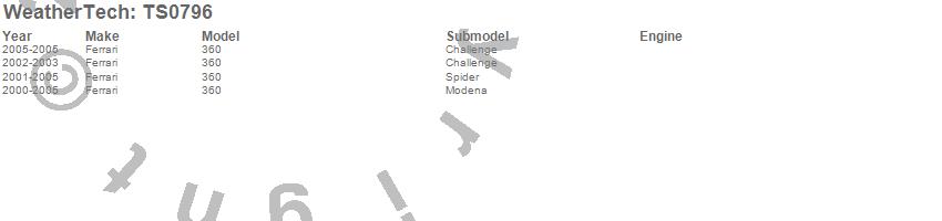 Below is an abbreviated list of applications for the WeatherTech SunShade.360, Ferrari, 2005, 2004, 2003, 2002, 2001, 2000