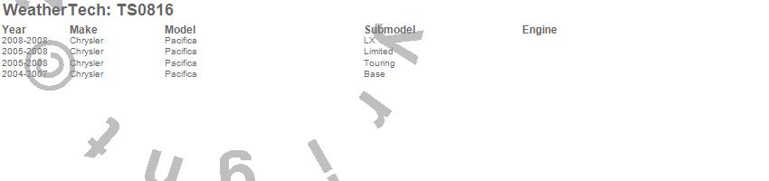 Below is an abbreviated list of applications for the WeatherTech SunShade.Pacifica, Chrysler, 2008, 2007, 2006, 2005, 2004