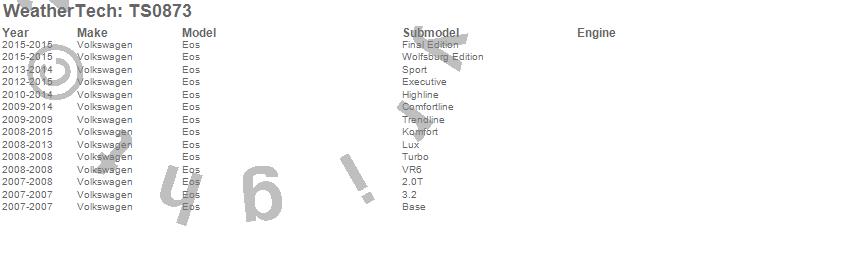 Below is an abbreviated list of applications for the WeatherTech SunShade.Eos, Volkswagen, 2015, 2014, 2013, 2012, 2011, 2010, 2009, 2008, 2007