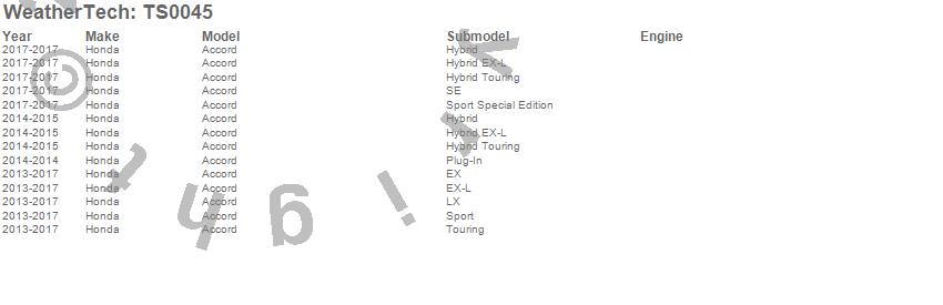 Below is an abbreviated list of applications for the WeatherTech SunShade.Accord, Honda, 2017, 2016, 2015, 2014, 2013